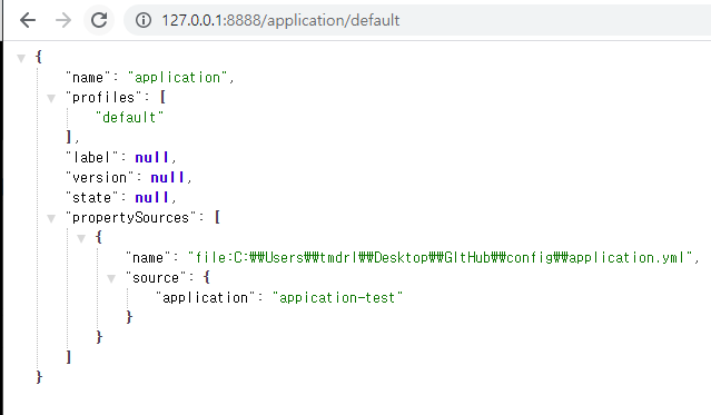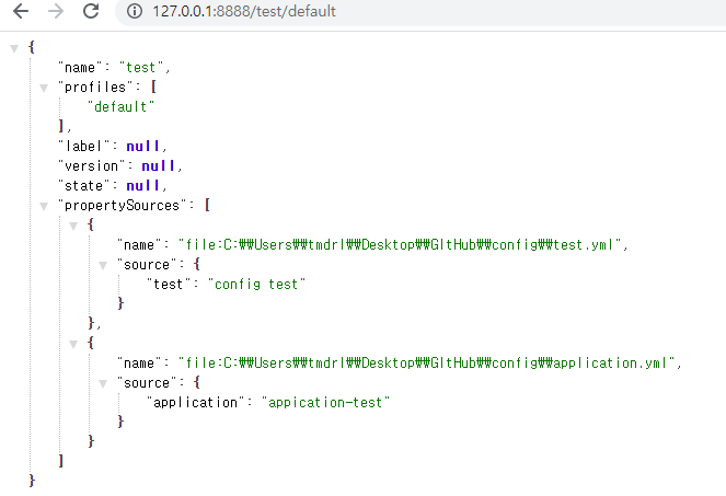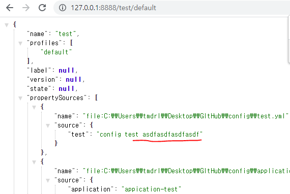 test.yml파일에는 test: config test값이 들어있다.