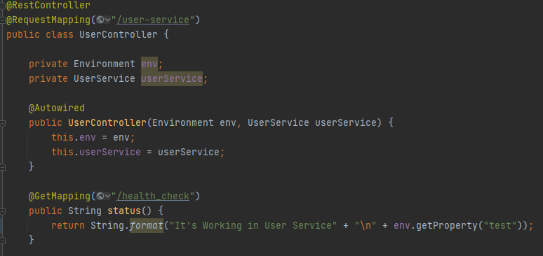 user-service 의 health_check에서 해당 설정 값을 가져와보자.