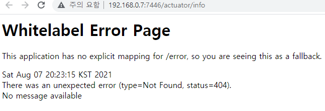 이렇게 나오는데 info는 등록하지 않았으니까 없는 페이지라 뜨고