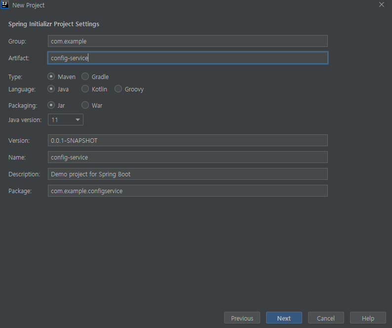 우선 Spring Cloud Config 프로젝트를 생성하자